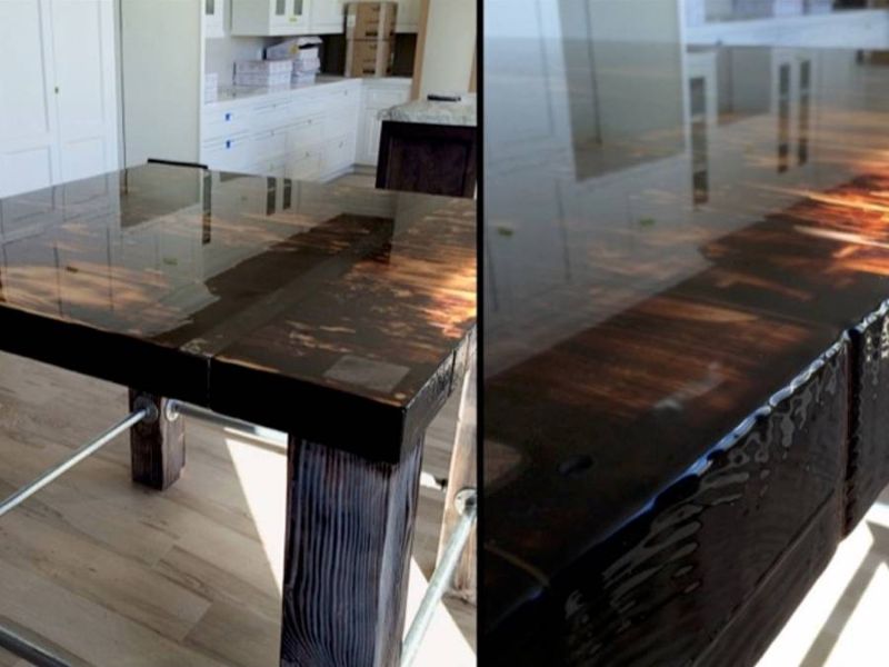 Side and Edges: When pouring over the Sides and Edges of a table, counter, or bar top, make sure that you purchase extra material to account for spillage over the sides as you will lose material coating them. You will lose about 30% of the epoxy going over the edge to coat the sides.